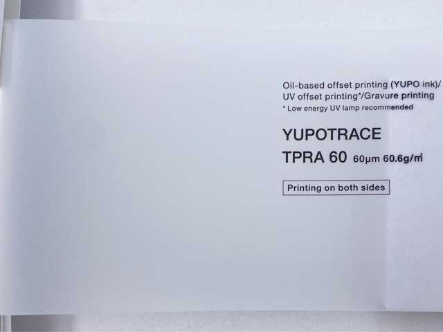 ผลิตภัณฑ์โปร่งแสงแบบบาง แข็งแรงกว่ากระดาษลอกลายทั่วไป ให้สัมผัสนุ่ม ทนต่อความเสียหาย นอกจากนี้ยังสามารถพิมพ์แบบหลายสีได้อีกด้วย ไม่เปลี่ยนขนาดจากน้ำหรือความชื้น เหมาะสำหรับเขียนด้วยดินสอ พิมพ์ได้ด้วยการพิมพ์UV offset , Gravure and Oil-based offset .