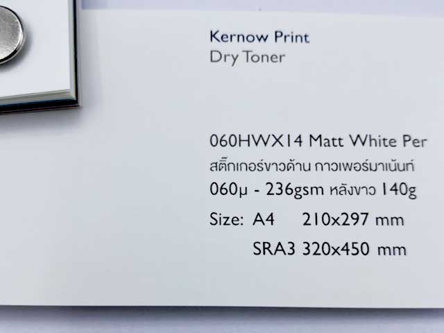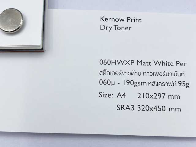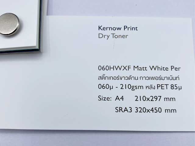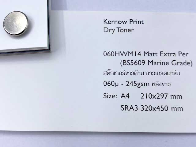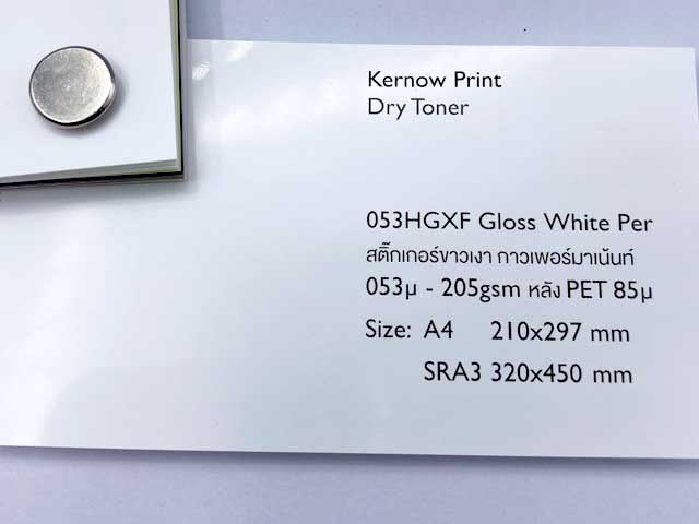 เหมาะสำหรับกระบวนการพิมพ์แบบthermal transfer and dry toner (laser/LED/flash fusion) ทั้งแบบขาวดำและสี เครื่องจักรสำหรับผลิตปริมาณน้อยและปานกลาง ยึดติดด้วยแรงกดPermanent acrylic การดาษผิวขาวด้าน มีคุณสมบัติทนต่อการฉีดขาด ผิวฟิล์มกันน้ำ