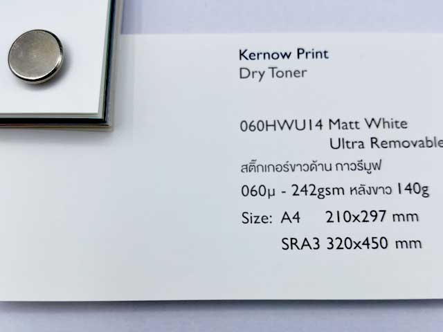 เหมาะสำหรับกระบวนการพิมพ์แบบthermal transfer and dry toner (laser/LED/flash fusion) ทั้งแบบขาวดำและสี เครื่องจักรสำหรับผลิตปริมาณน้อยและปานกลาง ยึดติดด้วยแรงกดแบบถอดได้เป็นพิเศษ มีความยึดเกาะต่ำสามารถลอกออกได้ง่าย กระดาษผิวขาวด้าน ทนต่อการฉีกขาด ผิวฟิล์มกันน้ำ พื้นผิวเรียบ กระดาษผิวหน้ามีน้ำหนัก เหมาะสำหรับ การพิมพ์ระยะยาวด้วยความเร็วต่ำถึงปานกลาง