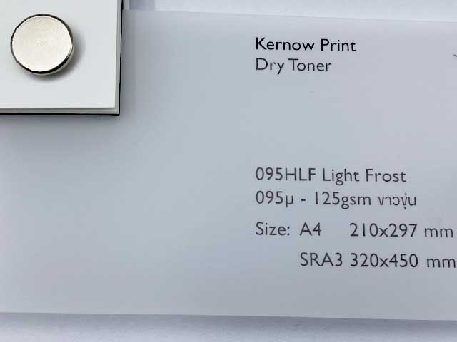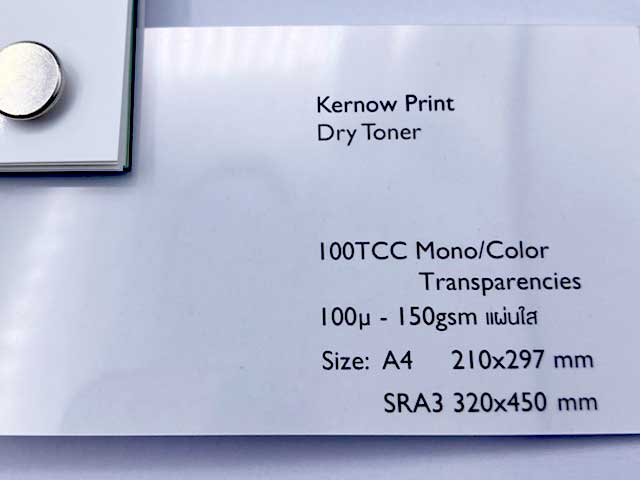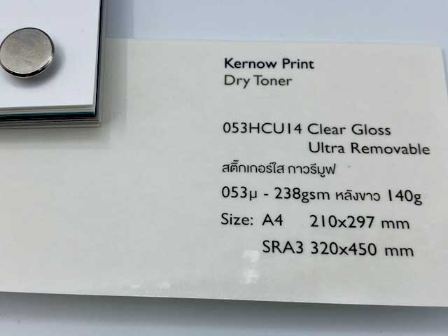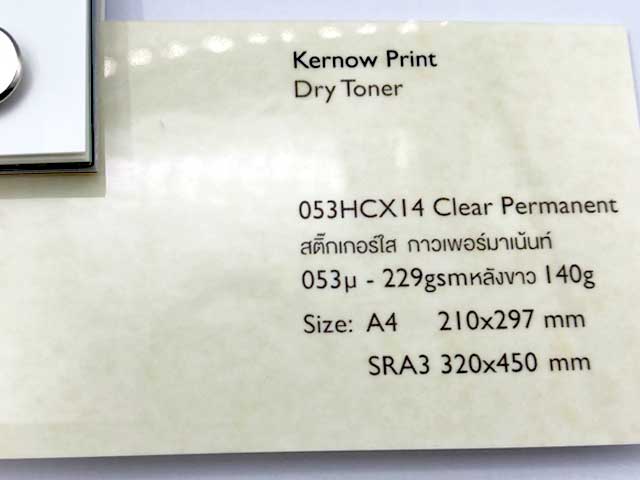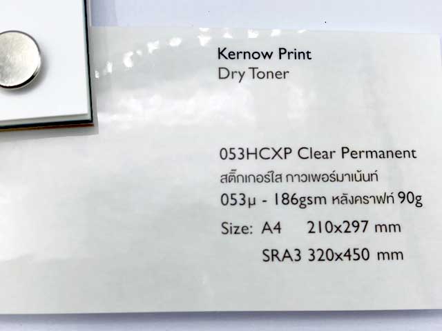 เหมาะสำหรับกระบวนการพิมพ์แบบthermal transfer and dry toner (laser/LED/flash fusion) ทั้งแบบขาวดำและสี เครื่องจักรสำหรับผลิตปริมาณน้อยและปานกลาง เป็นกระดาษใส สำหรับพิมพ์ขาวดำและสี มีผิวเรียบ ยึดติดด้วย permanent acrylic แผ่นฟิล์มที่ลอกมีความเสถียร